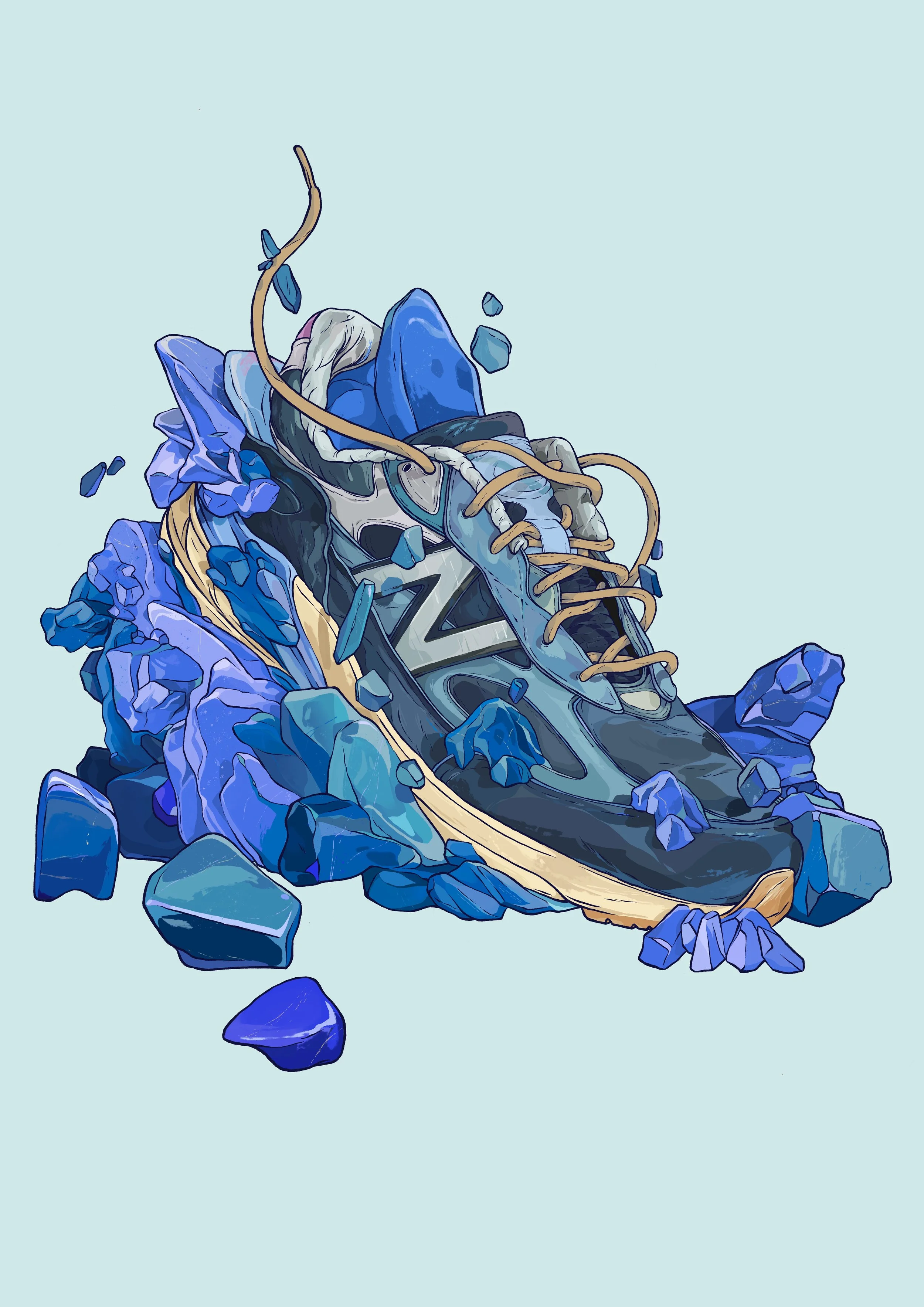 Iād been sitting on the idea of incorporating rocks into a drawing for a while and when I see the New Balance x Action Bronson release news, I started sketching out ideas right away.